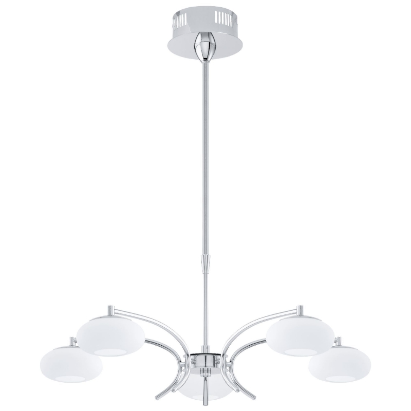 Mooie hanglamp uit de serie ALEANDRO van het merk Eglo. Deze lamp heeft een behuizing van staal, dat is afgewerkt in chroom met wit opaal-mat glas.