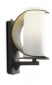 Wandlamp met aluminium behuizing afgewerkt in zwart en blender van opaal glas.
