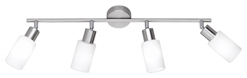 Een Metaal Spot in het Nikkel Mat. Reality by Trio Leuchten levert dit lampenproduct Excl. 4 x max. 40 W E14 230V en is niet dimbaar. Dit Spot heeft een breedte van 600 mm, een diepte van 80 mm en een hoogte van 210 mm.