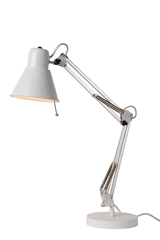De TERRA 03602/01/31 Bureaulamp van Lucide verlichting in wit van metaal. Deze scandinavie stijl burolamp heeft een hoogte in cm van 60 , een breedte van 55, een diepte van 18. De Lucide Burolamp TERRA Wit met EAN 5411212030412 en artikelnummer 03602/01/31 heeft een fitting van 1x E27 en is extern dimbaar.